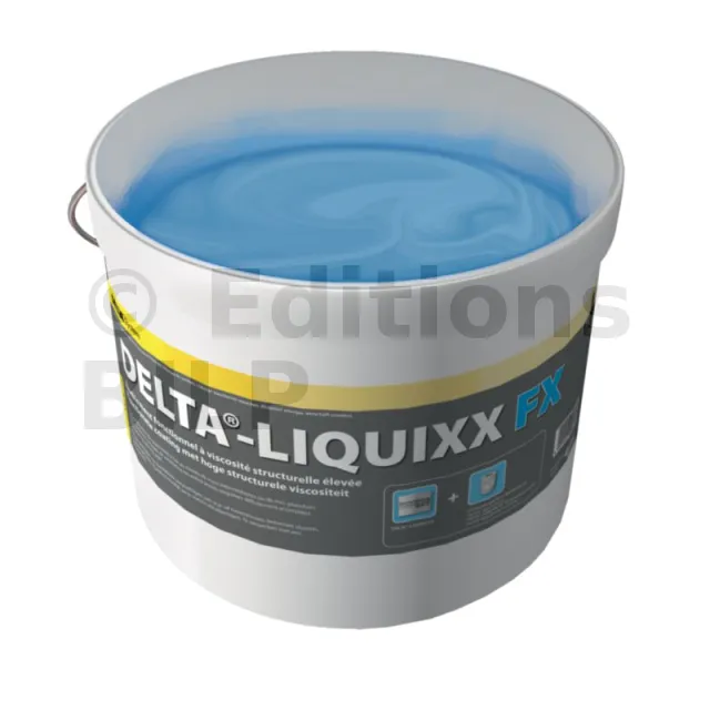 - RendementDELTA®-LIQUIXX FX : env. 1 l/m² - DELTA®-LIQUIXX GT 10 : env. 2 rouleaux de géotextile (2 x 20 m) par bidon de 4 litres