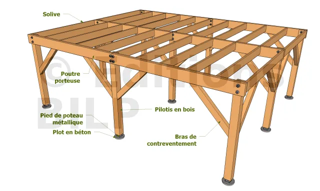 - 3 : à l’aide d’un niveau à bulle ou d’un fil à plomb, mettre le pilotis à la verticale.