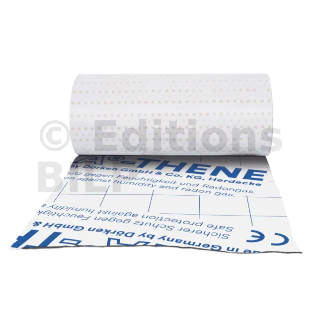 - MatériauCombinaison d’une feuille de PEHD spéciale stratifiée croisée et d’une couche d’étanchéité et d’adhésif en caoutchouc bitume.