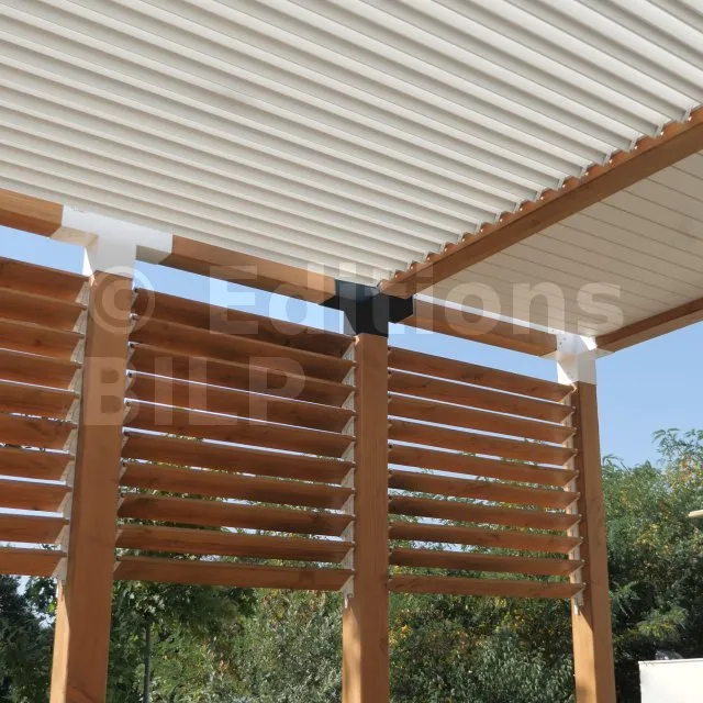 Il permet de raccorder une poutre de 120x120mm perpendiculairement à un chevron de 120x120mm, le tout étant supporté par un poteau vertical de 120x120mm.
