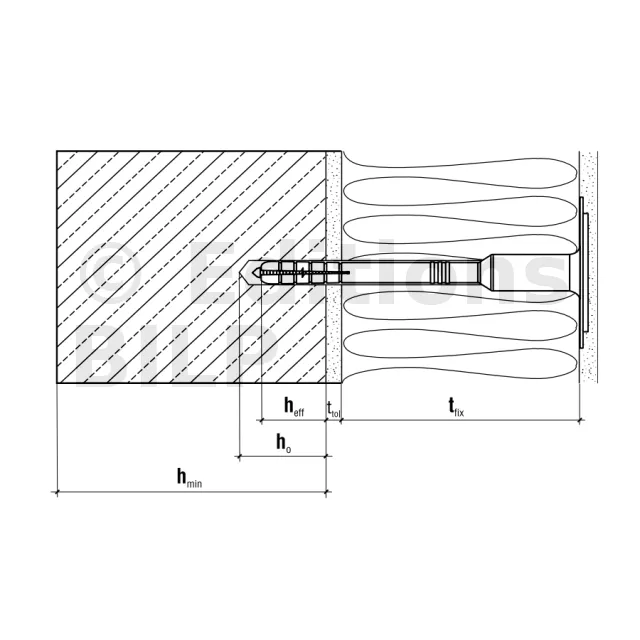 - Épaisseur minimale du matériau-support, [hmin]100mm