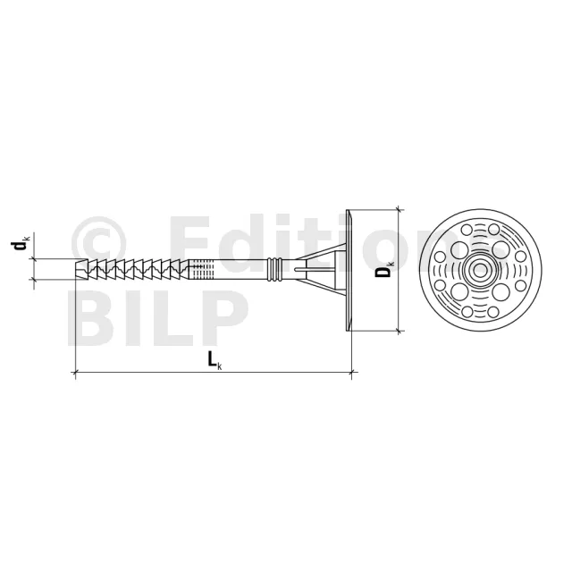Cheville d’isolation à frapper avec clou en plastique pour isolants thermiques rigides - grande profondeur d’ancrage - Réf. LFN10200(200)