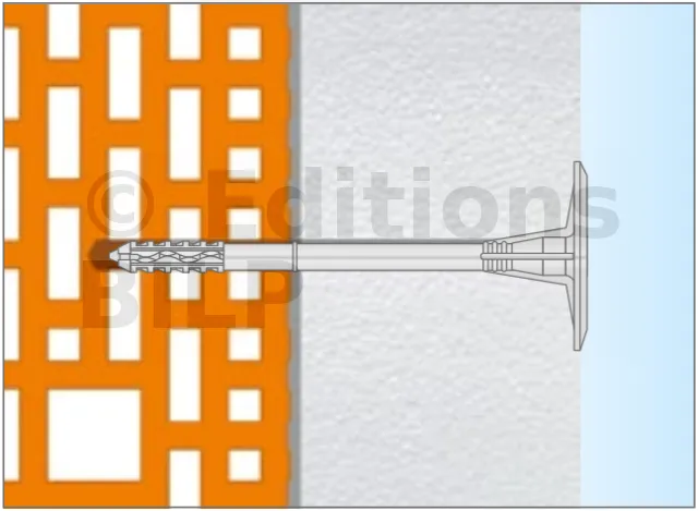 Cheville d’isolation à frapper avec clou en plastique pour isolants thermiques rigides - petite profondeur d’ancrage - Réf. LTX08155(200)