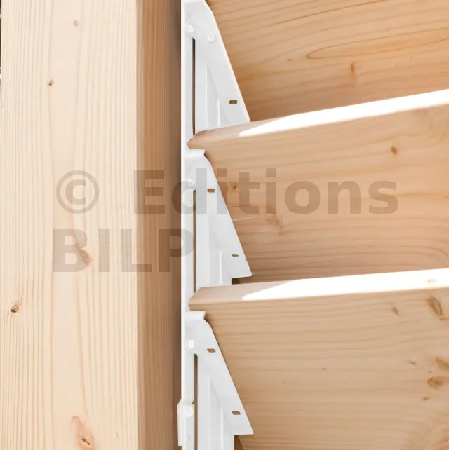 Les lames à monter doivent faire 27 ou 28mm d’épaisseur et une largeur à partir de 135mm (voir un peu plus). Vous pouvez utiliser des planches de bois stables, par exemple en bois exotique, en feuillus ou en résineux.