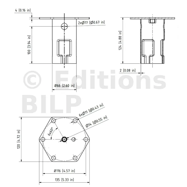 Platine plate pour fondation à vis - Embout Hexagone M12 - Réf. 51307