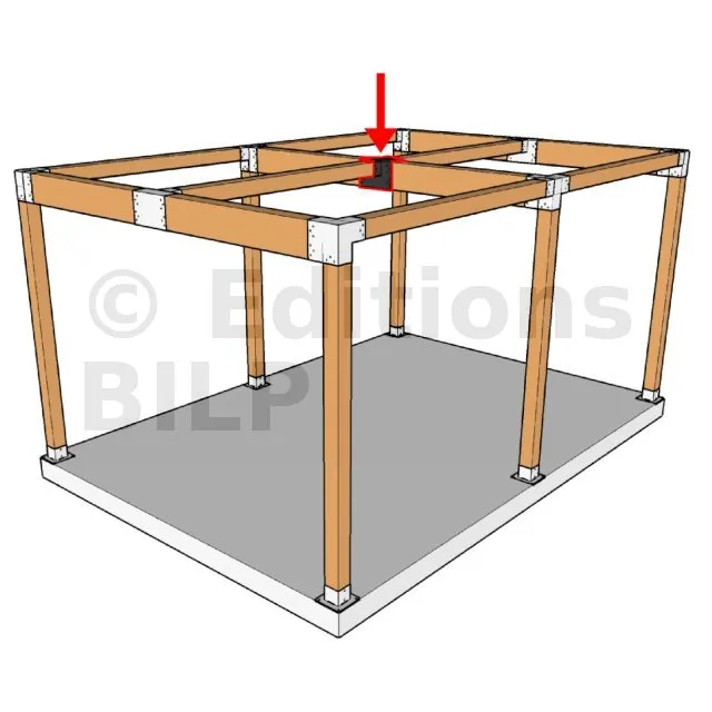Il permet de raccorder deux poutres 120x120mm perpendiculairement à une grosse poutre 240x120mm, SANS être soutenu par un poteau vertical.