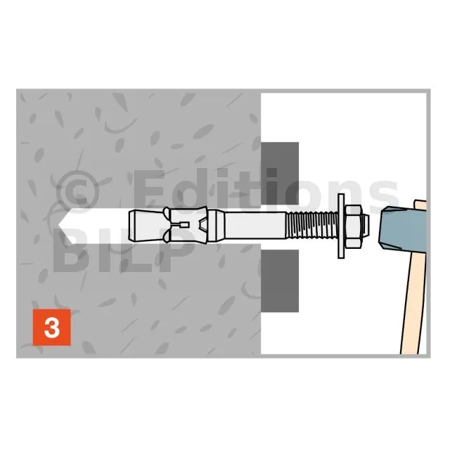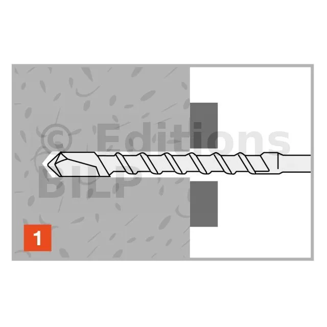 - Montage au travers de l’élément à fixer, Ø de perçage = Ø de cheville