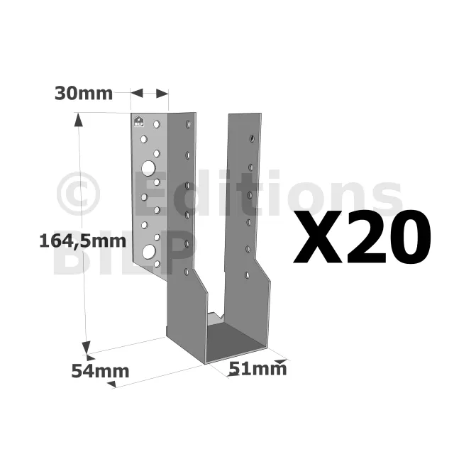 Sabots à ailes extérieures, gamme SBE ECONOMIQUE (épaisseur 1,5mm, profondeur 55mm) - Réf. SBE51/165_20