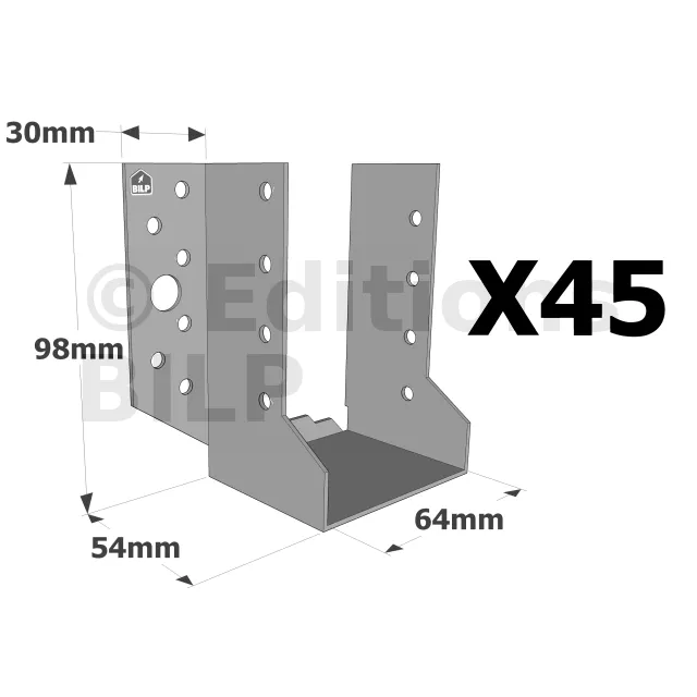 Sabots à ailes extérieures, gamme SBE ECONOMIQUE (épaisseur 1,5mm, profondeur 55mm) - Réf. SBE64/98_45