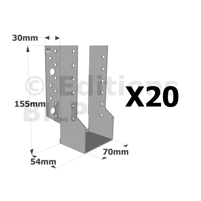 Sabots à ailes extérieures, gamme SBE ECONOMIQUE (épaisseur 1,5mm, profondeur 55mm) - Réf. SBE70/155_20