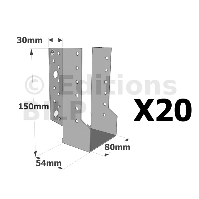 Sabots à ailes extérieures, gamme SBE ECONOMIQUE (épaisseur 1,5mm, profondeur 55mm) - Réf. SBE80/150_20