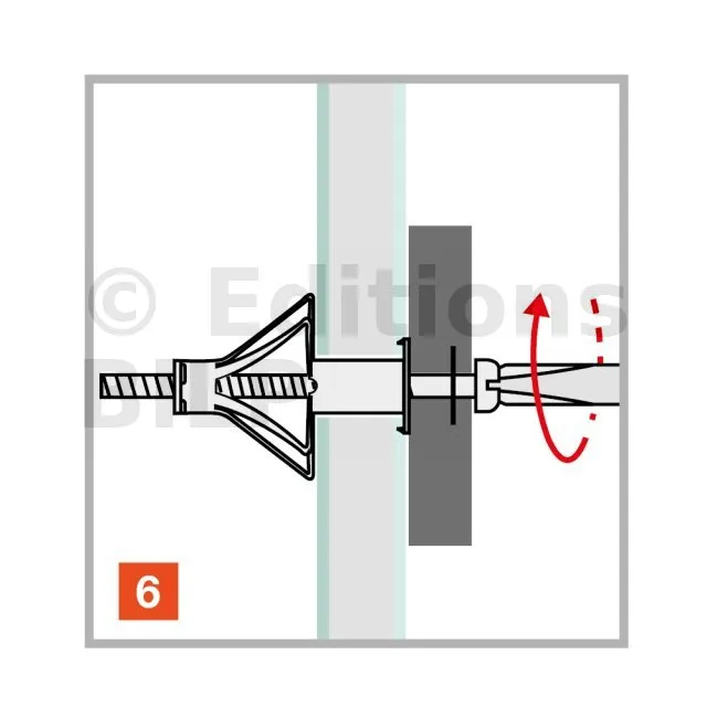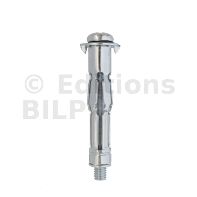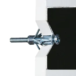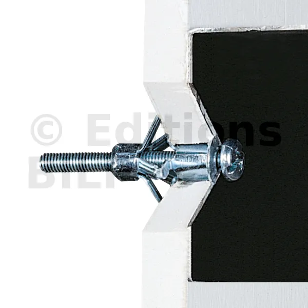 La cheville métallique à expansion TMC avec vis pas métrique prémontée, permet la fixation d’éléments sur plaque de plâtre ou cloison sèche, ou tout support creux dont la cavité correspond aux dimensions de la cheville.