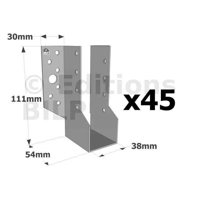 Sabots à ailes extérieures, gamme SBE ECONOMIQUE (épaisseur 1,5mm, profondeur 55mm) - Réf. SBE38/111_45