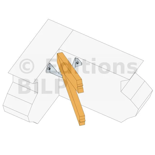 Ce sabot permet de reprendre les fermes dans les angles de maçonnerie à 90°. Il est disponible en largeur 38 mm ou pliable en largeur, au choix, entre 76 et 150 mm.