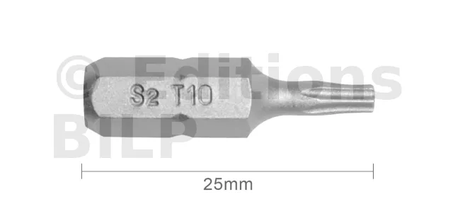 Embout T10 25mm (Qualité Professionnelle, Acier S2) - lot de 20 embouts - Réf. EmboutT10_20
