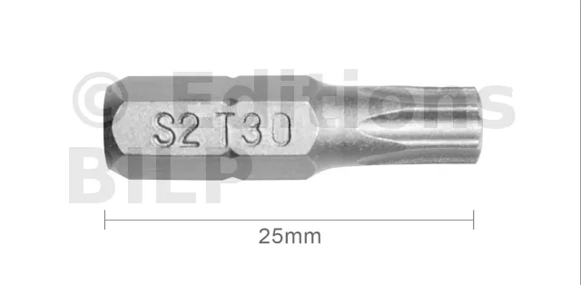 Embout T30 25mm (Qualité Professionnelle, Acier S2) - lot de 1 embout - Réf. EmboutT30_1
