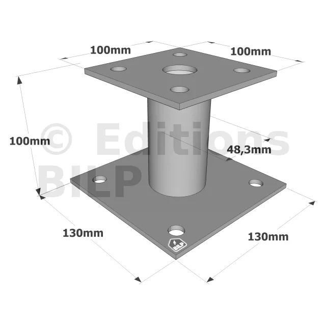 Pied de poteau fixe, corps rond, hauteur : 100 mm - Réf. PPA100