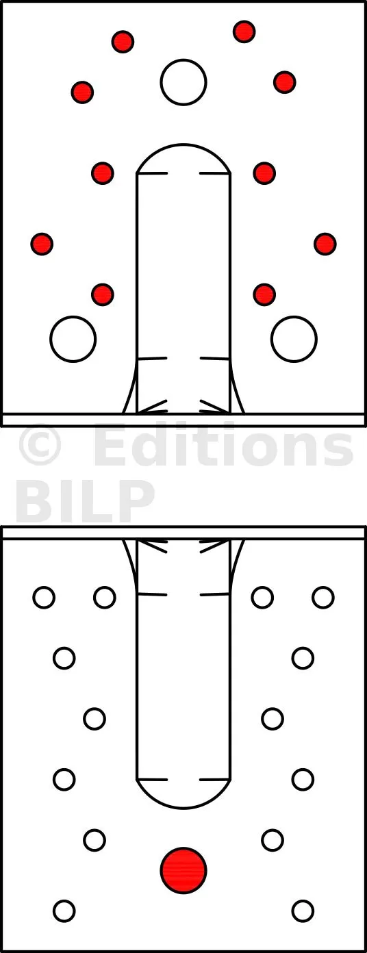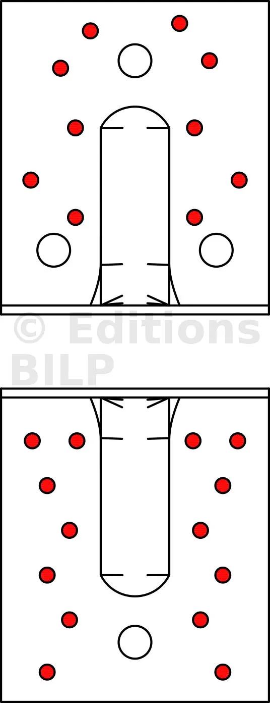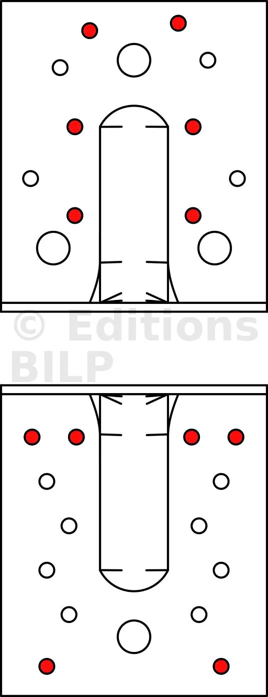 - Fixation BOIS/BOIS - clouage totalAile A : 10 ; Aile B : 14 ; type : Pointes annelées CNA Ø4.0x35 ou Ø4.0x50 mm, Vis CSA Ø5.0x35 ou CSA Ø5.0x40