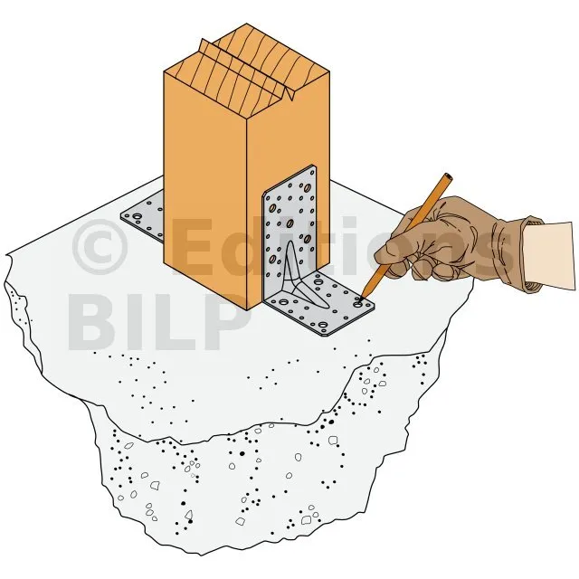 3. Si le support est en bois, l’équerre est aussi pointée ou vissée sur celui-ci.