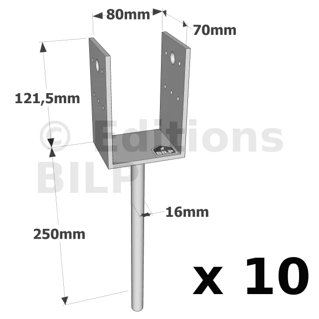 Pieds de poteau en U à sceller - Réf. PPD80/70G_10