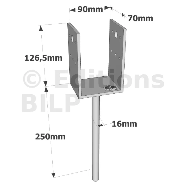 Pieds de poteau en U à sceller - Réf. PPD90/70G