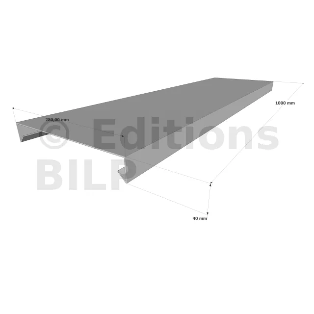 Couvertine d’acrotère plate - Gamme 280 - Aluminium 15/10 - Longueur 1000mm - Réf. CP15-280-1000