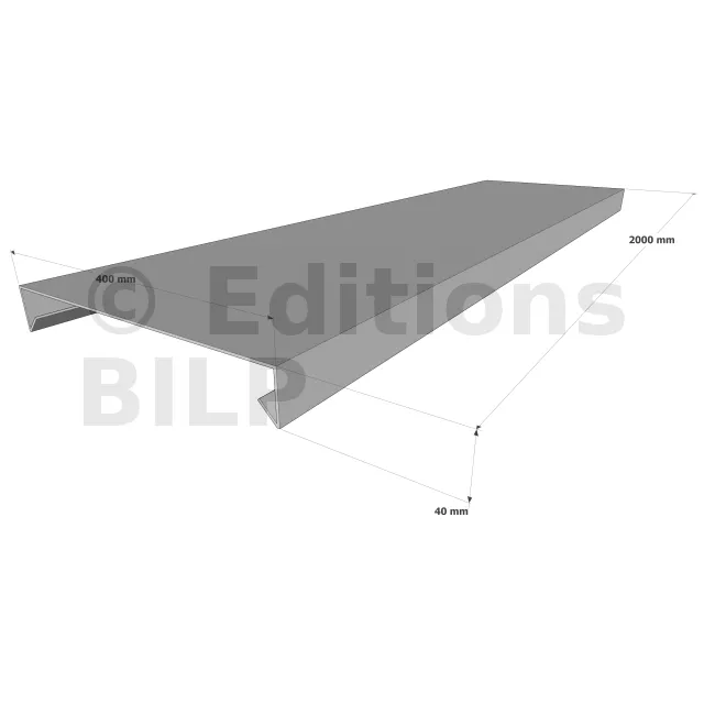Couvertine d’acrotère plate - Gamme 400 - Aluminium 15/10 - Longueur 1000mm - Réf. CP15-400-1000