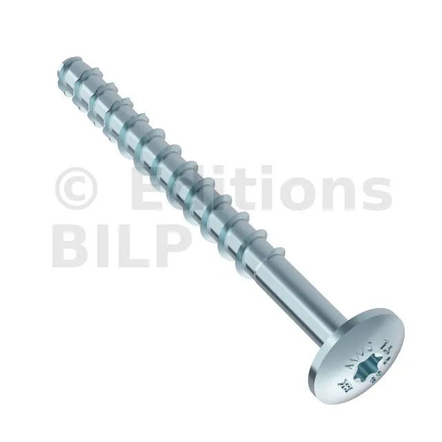 Cette vis à béton se monte à proximité des bords sans clé dynamométrique et est démontable.