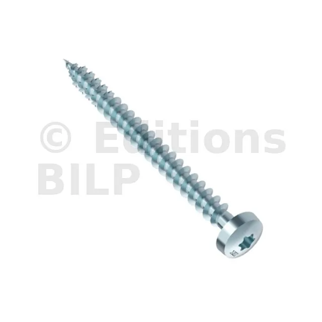 HECO-FIX-plus, tête ronde, T-Drive, filet total, zingué blanc, A2K, revêtement lubrifié, Dim. 3.0x20mm - Réf. 20835