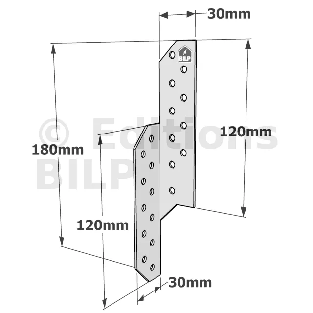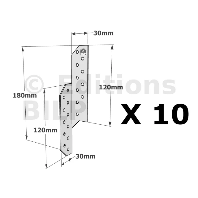 Patte de solivage GAUCHE - 30x180x1.5mm - Réf. PSG180/30/1.5_10