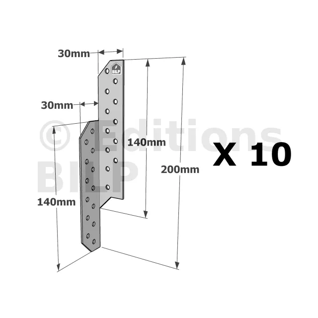 Patte de solivage GAUCHE - 30x200x1.5mm - Réf. PSG200/30/1.5_10