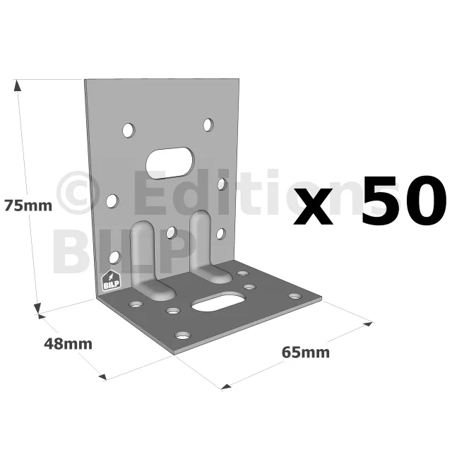 Équerres renforcées CLASSIQUES asymétriques pour le BOIS et le BETON - Réf. E5/2_50