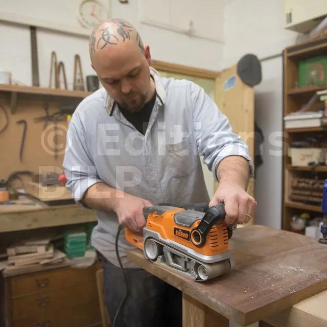 Moteur puissant de 1 200 W / 5,5 A pour une élimination rapide du matériau. Vitesse variable. Rouleau avant de petit diamètre pour poncer dans les endroits étroits et pour un travail de précision. Réglage précis du centrage de la bande. Tubulure latérale d’extraction des poussières adaptée aux sacs à poussières ou aspirateurs. Voyant de sécurité au néon indiquant la mise sous tension. Sac à poussières, presses d’inversion et 3 bandes abrasives incluses (Grain 80, 100 et 180).