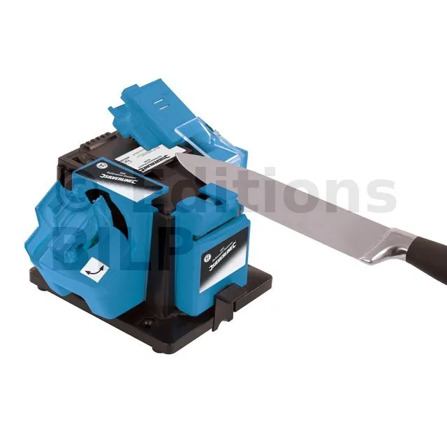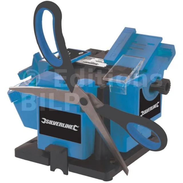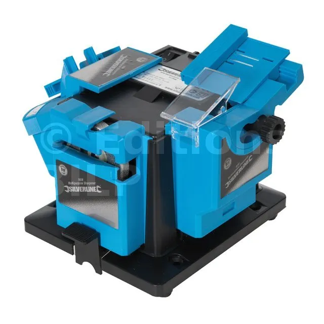 Appareil spécialement conçu pour réaliser l’affûtage de forets en acier HSS (acier rapide), burins, couteaux, ciseaux, fers de rabots, et autres lames. Comprend des gabarits afin d’obtenir un réglage de l’angle d’affûtage d’une grande précision. Garantit un affûtage rapide et soigné. Pour mèches en acier HSS (acier rapide) de 3 à 13 mm de diamètre et pour lames de 6 à 51 mm de largeur. Polyvalent et facile d’utilisation. Disques de meulage de rechange disponibles.