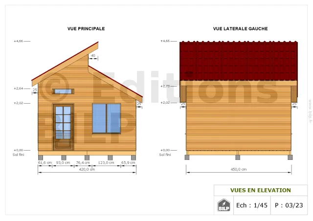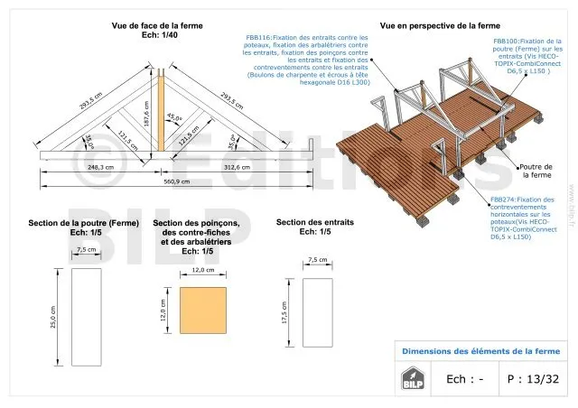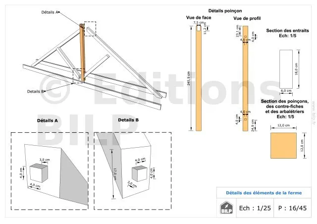 Les plans de structure à l’échelle sont faciles à lire et à comprendre. Ils vous permettrons de réaliser vous-même la structure de votre cabane. Les détails de réalisation sont indiqués. Nous calculons et optimisons les dimensions et les sections de pièces de bois.