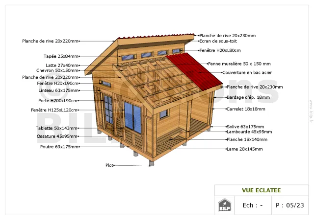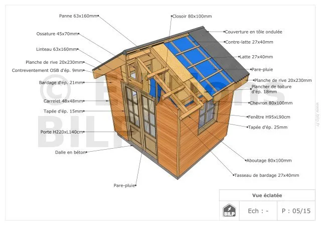Vous aurez une vue éclatée qui vous permettra de distinguer tous les éléments constituants votre cabane.