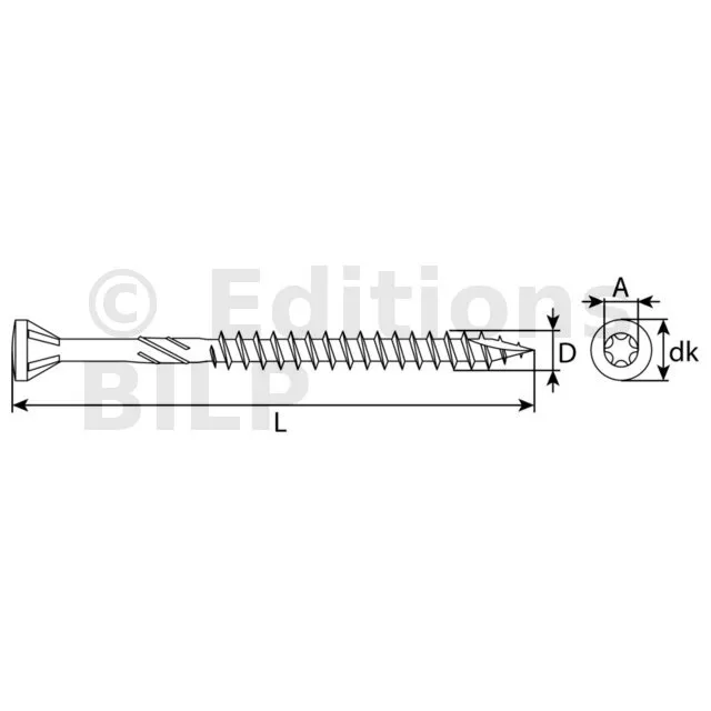 Vis pour lames de terrasse bois, tête fraisée autofraisante, inox A2