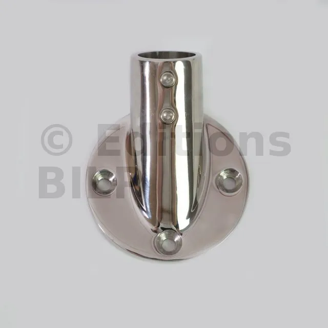 Embase inox femelle pour actionnement des lames positionnées en hauteur. L’embase se monte sur une lame et permet de recevoir la baguette d’actionnement amovible.