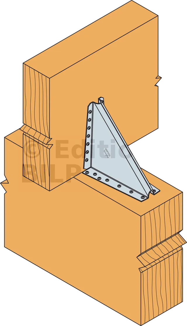 L‘échantignole métallique KNAG évite l‘utilisation d‘échantignoles en bois qui doivent respecter une certaine découpe par rapport au fil du bois.