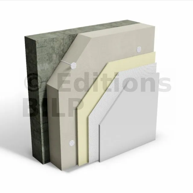 - Isolation par enduit sur isolant (ETICS-External Thermal Insulation Composit System).