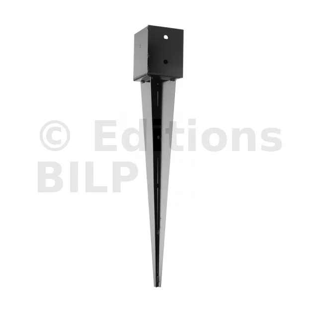 Pied de poteau carré à enfoncer - Finition NOIRE - Réf. PPJNET90/620