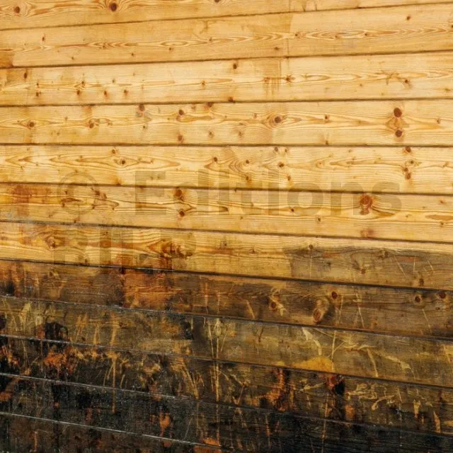 - S’applique sur les bois résineux, autoclaves ou non, exotiques, feuillus (sauf chêne châtaignier), y compris les bois composites.