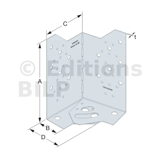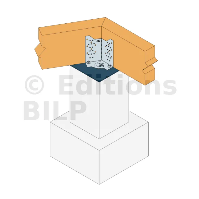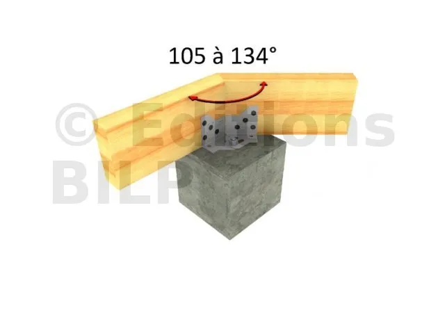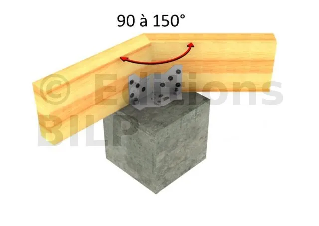 L’équerre ABF120 est préconisée dans la réalisation d’une ceinture porteuse de terrasse bois sur plot de béton. Elle est réglable en angle sur chantier et permet d’obtenir un angle intérieur de 90° à 150°. Des repères visuels sur la pièce permettent d’obtenir un ajustement à angle souhaité.