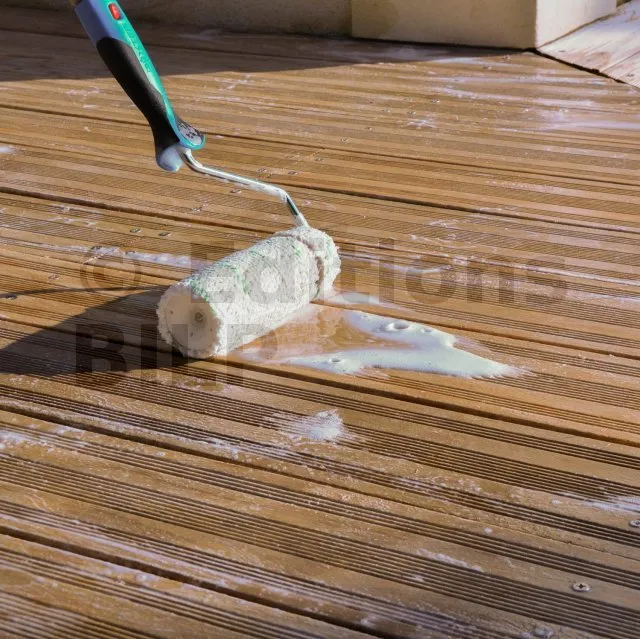 Ce produit permet de décolorer les taches intrinsèques au bois et d’éclaircir les traces de bleuissement dans le but de redonner un aspect homogène et régulier au bois sans avoir à le poncer.