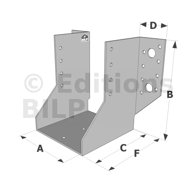 Les sabots GSE en acier galvanisé offrent une flexibilité grâce à des largeurs au choix selon les plages indiquées. Cette caractéristique permet de s’adapter parfaitement aux dimensions spécifiques des éléments de construction, garantissant une compatibilité optimale et une fixation stable.