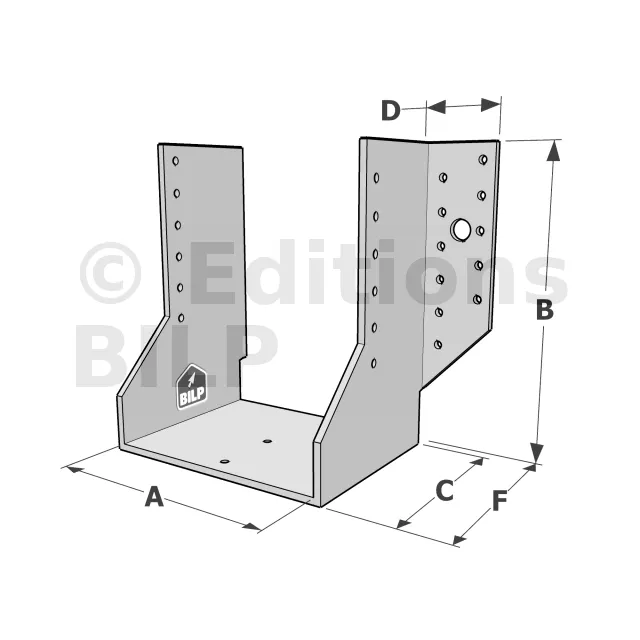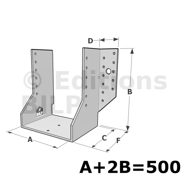Les sabots GSE en acier galvanisé offrent une flexibilité grâce à des largeurs au choix selon les plages indiquées. Cette caractéristique permet de s’adapter parfaitement aux dimensions spécifiques des éléments de construction, garantissant une compatibilité optimale et une fixation stable.