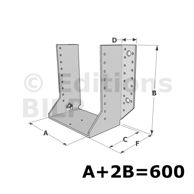 Les sabots GSE en acier galvanisé offrent une flexibilité grâce à des largeurs au choix selon les plages indiquées. Cette caractéristique permet de s’adapter parfaitement aux dimensions spécifiques des éléments de construction, garantissant une compatibilité optimale et une fixation stable.