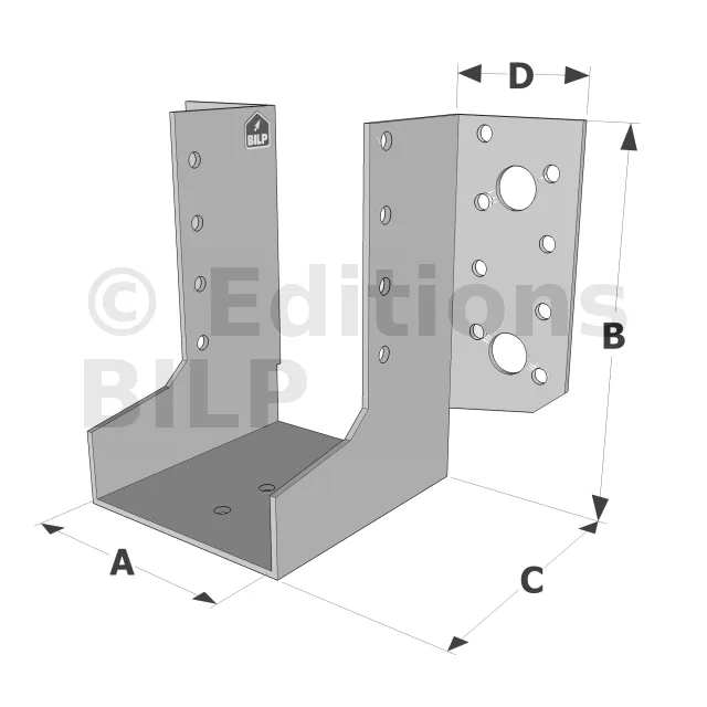 - Polyvalence : Disponibles en différentes tailles et profondeurs, les sabots SAE s’adaptent à une variété d’applications, des charpentes aux poteaux, en passant par les angles et les fermettes.