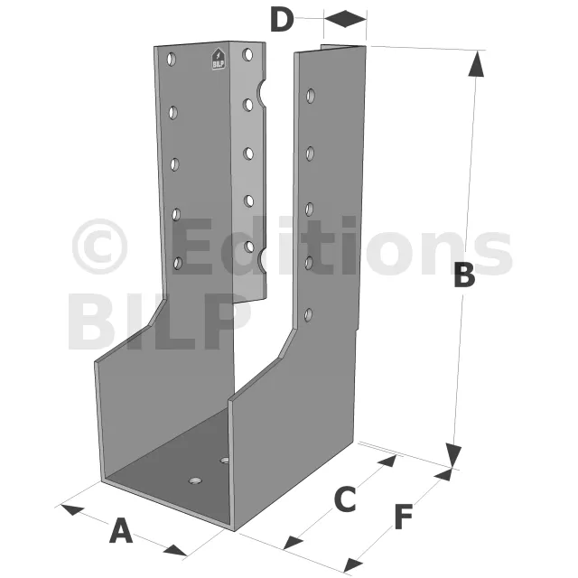 - Robustesse et discrétion : Grâce à leur conception en acier galvanisé, ces sabots sont robustes et résistent aux conditions climatiques difficiles. Les ailes intérieures permettent une intégration discrète, préservant l’esthétique de la structure.