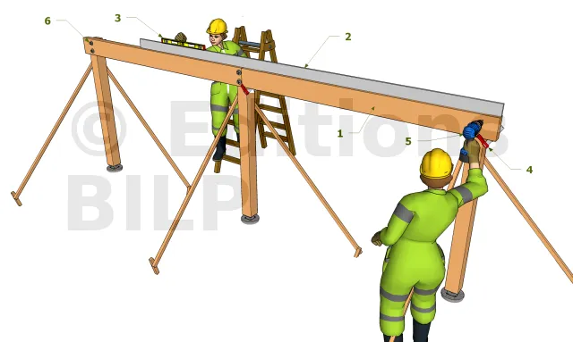 - 1 : Poser la poutre porteuse sur les encoches des pilotis.